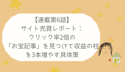 ブログの「終わり」を 利益に変える方法サイト更新に疲れたあなたへ。失敗から学んだ、サイトを損切りせず、利益に変える手順をステップバイステップで解説。 運営者情報へ New Posts記事一覧 NEWPOPULAR 【連載第8話】焦らずじっくりが重要!購入から3週間、初心者が直面する「理想と現実」と「次の一手」 2025年10月24日 2025年10月8日 【連載第7話】「即効で収益化」の壁。購入初週で私がやったことと、焦ってはいけない理由【サイト買収1週間報告】 2025年10月5日 【連載第6話】クリック率2倍の「お宝記事」を見つけて収益の柱を3本増やす具体策 2025年10月4日 【連載第5話】買主が買いたくなるサイトへ!サイト売却に向けた調整術 2025年10月3日 【連載第4話】売却益を最大化!アクセスがあるのに稼げないサイトの「高CVR化」集中戦略 記事一覧へ 【連載第8話】焦らずじっくりが重要!購入から3週間、初心者が直面する「理想と現実」と「次の一手」 2025年10月24日 2025年10月8日 【連載第7話】「即効で収益化」の壁。購入初週で私がやったことと、焦ってはいけない理由【サイト買収1週間報告】 2025年10月5日 【連載第6話】クリック率2倍の「お宝記事」を見つけて収益の柱を3本増やす具体策 2025年10月4日 【連載第5話】買主が買いたくなるサイトへ!サイト売却に向けた調整術 2025年10月3日 【連載第4話】売却益を最大化!アクセスがあるのに稼げないサイトの「高CVR化」集中戦略 最新おすすめ記事 【連載第8話】焦らずじっくりが重要!購入から3週間、初心者が直面する「理想と現実」と「次の一手」 2025年10月24日 【連載第7話】「即効で収益化」の壁。購入初週で私がやったことと、焦ってはいけない理由【サイト買収1週間報告】 2025年10月8日 【連載第6話】クリック率2倍の「お宝記事」を見つけて収益の柱を3本増やす具体策 2025年10月5日 【連載第5話】買主が買いたくなるサイトへ!サイト売却に向けた調整術 2025年10月4日 【連載第4話】売却益を最大化!アクセスがあるのに稼げないサイトの「高CVR化」集中戦略 2025年10月3日 【連載第3話】サイトを買ったら何をする? 資産確保から収益化準備までの初期設定ロードマップ 2025年10月2日