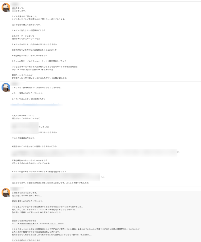 10月8日に始まり、最後のメッセージのやり取りが24日だったので、2週間以上交渉やら質問応答に追われました。